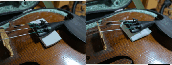 駒が外れるとテールピースが本体に強く打ち付けられることがあります。テールピースの下には布やスポンジ、ティッシュなどをはさみましょう。