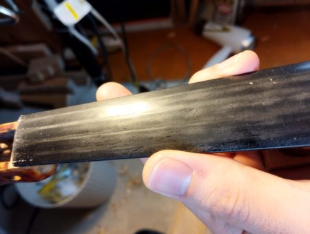 乾燥や衝撃で板が割れることがあります。ニカワを用いて接着+補強を行います。